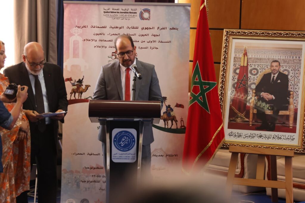 وجرى تنظيم هذا الحدث وسط أجواء احتفالية، وذلك بحضور والي جهة العيون الساقية الحمراء السيد عبد السلام بيكرات، ونائب رئيس مجلس جماعة العيون السيد اعبيد امريزيك، ونائبة رئيس مجلس الجهة السيدة امباركة بابا، ورئيس النقابة الوطنية للصحافة المغربية السيد عبد الكبير اخشيشن، إلى جانب الكاتبة الجهوية للنقابة بجهة العيون وثلة من الضيوف القادمين من العراق وتونس وموريتانيا.