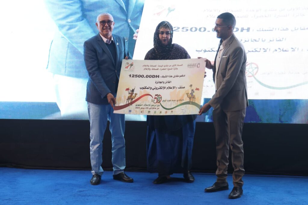 وقد شهد الحفل الختامي الإعلان عن الفائزين في مختلف أصناف الجائزة، حيث تُوّج الصحفي “وهبي المغفري” بجائزة الصحافة المكتوبة والإلكترونية، فيما نال كل من” لحسن بوجدور ومليكة لمرابط” تتويج صنف الإذاعة والتلفزة.