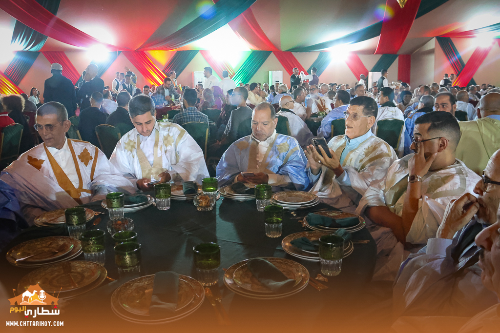 وقد شهدت هذه المناسبة حضورا وازنا تقدمه والي الجهة عبد السلام بيكرات، ورئيس المجلس الجماعي للعيون مولاي حمدي ولد الرشيد، ورئيس جهة العيون الساقية الحمراء سيدي حمدي ولد الرشيد، إلى جانب شيوخ وأعيان القبائل الصحراوية، ومنتخبي الجهة، وعدد من الشخصيات المدنية والعسكرية والمسؤولين الجهويين.