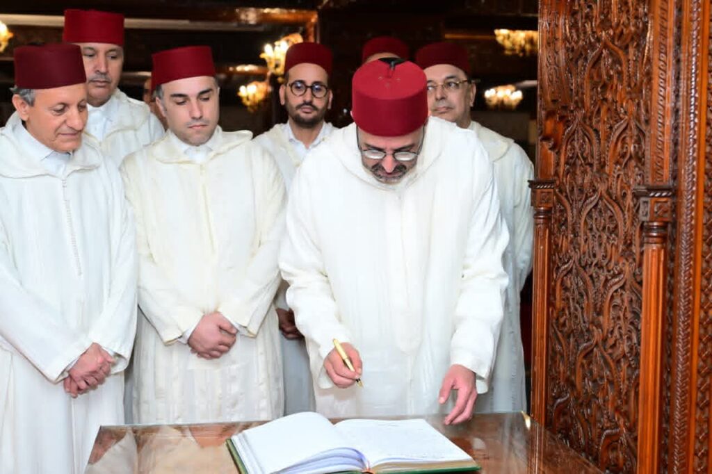 وبعد تلاوة آيات من الذكر الحكيم وقراءة الفاتحة ترحّمًا على روحه الطاهرة، ابتهل الوفد إلى الله العلي القدير أن يتغمد الفقيد بواسع رحمته ويسكنه فسيح جناته، وأن يشمل برحمته ومغفرته جلالة المغفور له الملك الحسن الثاني، طيب الله ثراه، الذي واصل مسيرة البناء والتشييد، وعمل على تعزيز مكانة المملكة إقليميًا ودوليًا.