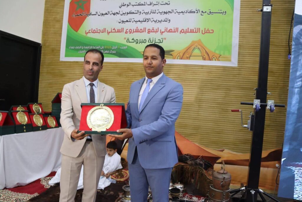 احتضن المركز الجهوي لمهن التربية والتكوين بمدينة العيون، يوم السبت 11 أبريل 2026، فعاليات حفل التسليم النهائي لبقع المشروع السكني الاجتماعي “تجزئة مبروكة”، في مبادرة اجتماعية تروم دعم نساء ورجال التعليم وتعزيز استقرارهم المهني والاجتماعي.